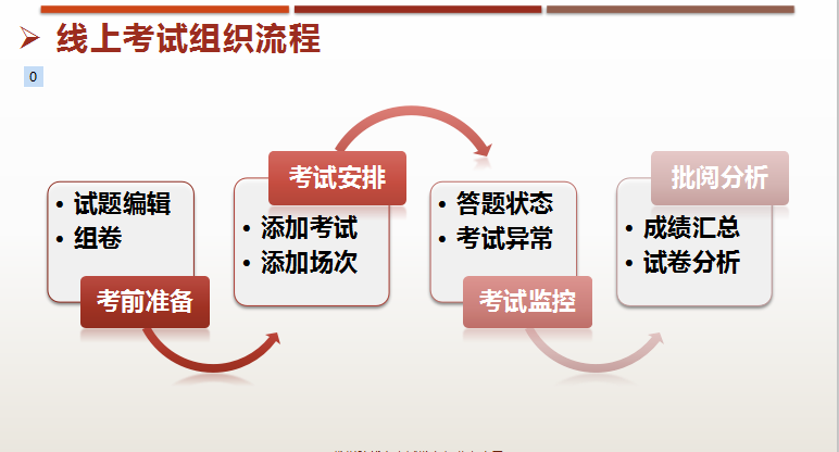 在交流会上,张晓萌老师就如何运用优学院进行试题编辑与考试发布,以及监考过程中的注意事项等内容,分别从考前准备、考试安排、考试监考与批阅分析四个方面展开分享。