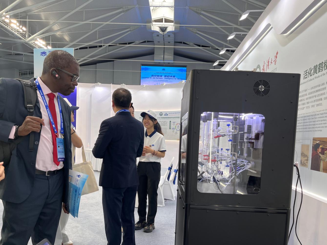 参展期间,伊朗科技部副部长阿博法兹勒·瓦赫迪教授、加拿大多伦多大学安大略教育研究院(OISE)詹姆斯·斯洛塔教授、澳大利亚蒙纳士大学苏州校区副校长余江龙教授、中国石油大学(北京)党委书记王同奇研究员、哈尔滨工业大学张兴文教授等国内外嘉宾驻足展位前,详细了解“基于大模型的智慧化工实验新范式”的教学理念与特点、实际应用情况、运行原理等,并给予了高度评价。