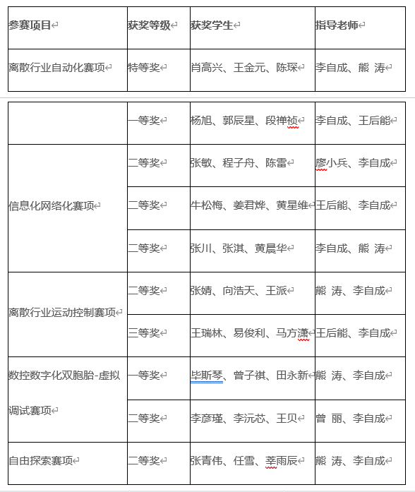 本届“西门子杯”中国智能制造挑战赛得到了教务处和电气信息学院的大力支持,自2015年以来,该项赛事一直由电气信息学院混合系统与运动控制团队负责组织和指导,该团队由李自成教授、王后能副教授、曾丽副教授、熊涛副教授和廖小兵博士等教师组成,历年来吸引着越来越多的电气信息学院本科生进入实验室,致力于学生智能制造创新实践能力的提升,逐渐形成了较为规范的本科生工程实践能力和学科竞赛培养机制。