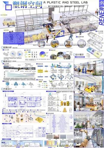 创意思路:基于塑钢的主题,将传统废旧材料与新兴材料结合