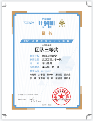 本网讯(通讯员 胡杰)近日,第六届中国高校计算机大赛——团体程序设计天梯赛全国总决赛成绩发布,我校计算机科学与工程学院人工智能学院40名学生组成四支队伍参加比赛取得优异成绩。来自2018级软件工程01班的张超熠同学,个人成绩在近11000位参赛学生中位列第67位,荣获全国一等奖。此次,计科学子参赛团队共获全国三等奖2项、湖北省二等奖1项、湖北省三等奖2项;参赛个人获得全国一等奖1项、全国二等奖3项、全国三等奖10项。