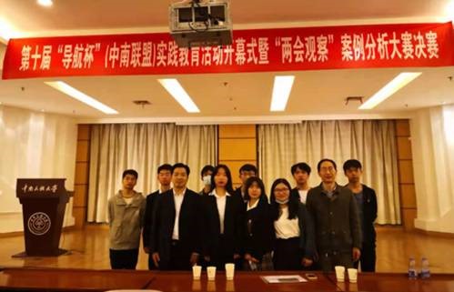 本网讯(通讯员 张润泽 蔡梦雪)4月25日晚,第十届“导航杯”(中南联盟)实践教育活动节开幕式暨“两会观察”案例分析大赛决赛在中南民族大学学术交流中心举行。本次实践教育活动节由中南民族大学、武汉理工大学、华中农业大学、中南财经政法大学、武汉工程大学、湖北工业大学、中国地质大学、武汉纺织大学八所高校联合主办,我校马克思主义学院院长曹胜亮、副院长常城和指导教师蔡梦雪出席了开幕式,曹胜亮院长应邀担任了此次比赛的评委。