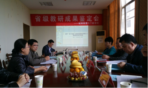 会议分两阶段进行,第一阶段由材料科学与工程学院院长刘治田教授主持,首先宣读了湖北省教育厅下发的同意鉴定的批复,同时介绍了各位到场的会议专家,并应专家们的要求简要介绍了两项省级教学研究项目的立项背景。第二阶段由专家组组长王贤保教授主持,项目组负责人材料科学与工程学院江学良教授作了成果汇报,专家们认真听取了成果的研究工作报告,并观看了成果现场PPT演示稿,重点翻阅了教育教学成果奖申请书、成果总结报告。鉴定委员会认为《基于“五个结合”的材料类拨尖创新人才培养模式的改革与实践》项目采用了双轨展示教学模式,在培养大纲、教学模式、课程体系、教材建设、教学手段及教学实践等方面进行了探索和改革,形成了具有特色的措施和可操作方案,该成果具有明显的创新性,在课堂教学及其综合应用方面具有一定的应用推广性;《地方高校材料科学与工程学院综合改革的实践与探索》项目实现了教学资源和教学方式改革的融合,立足未来教师、未来教育,构建教师教育创新平台,意在探讨高校教育的创新和变革。在肯定项目组取得成果的同时,委员们对材料的完整性、研究指导思想和思路及方法、研究成果及在教学中运用情况的肯定与评价、特色与创新、推广应用价值等方面存在的问题提出了宝贵的修改意见。经专家组讨论,一致同意这两项教研成果通过鉴定。